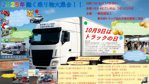 2025年働く乗り物大集合!10月9日はトラックの日@武蔵村山つむぐひろば