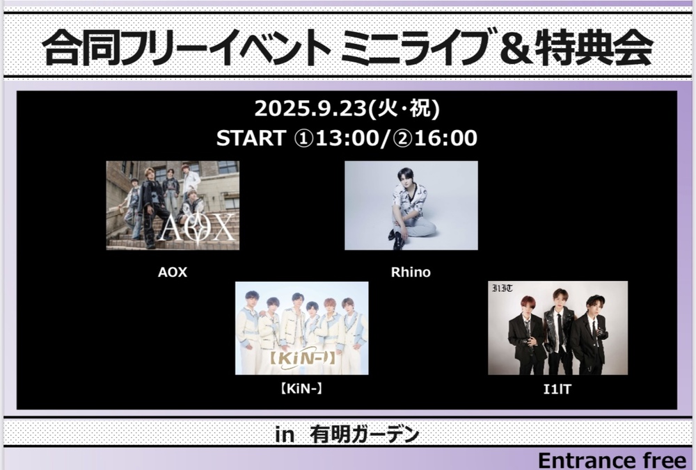 ※各種「特典券」をお持ちの方は、ミニライブ終了後の特典会にご参加頂けます。