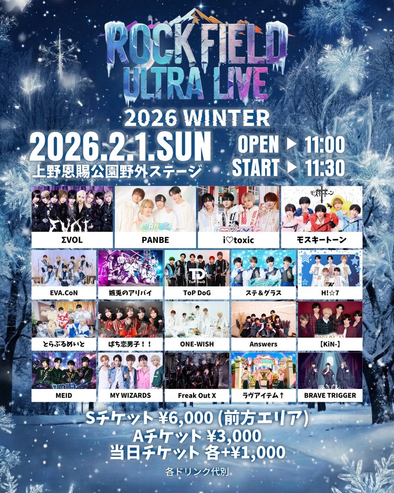 ■料金Sチケット ¥6,000 (前方エリア)Aチケット ¥3,000 / 当日 各+¥1,000※各ドリンク代別
